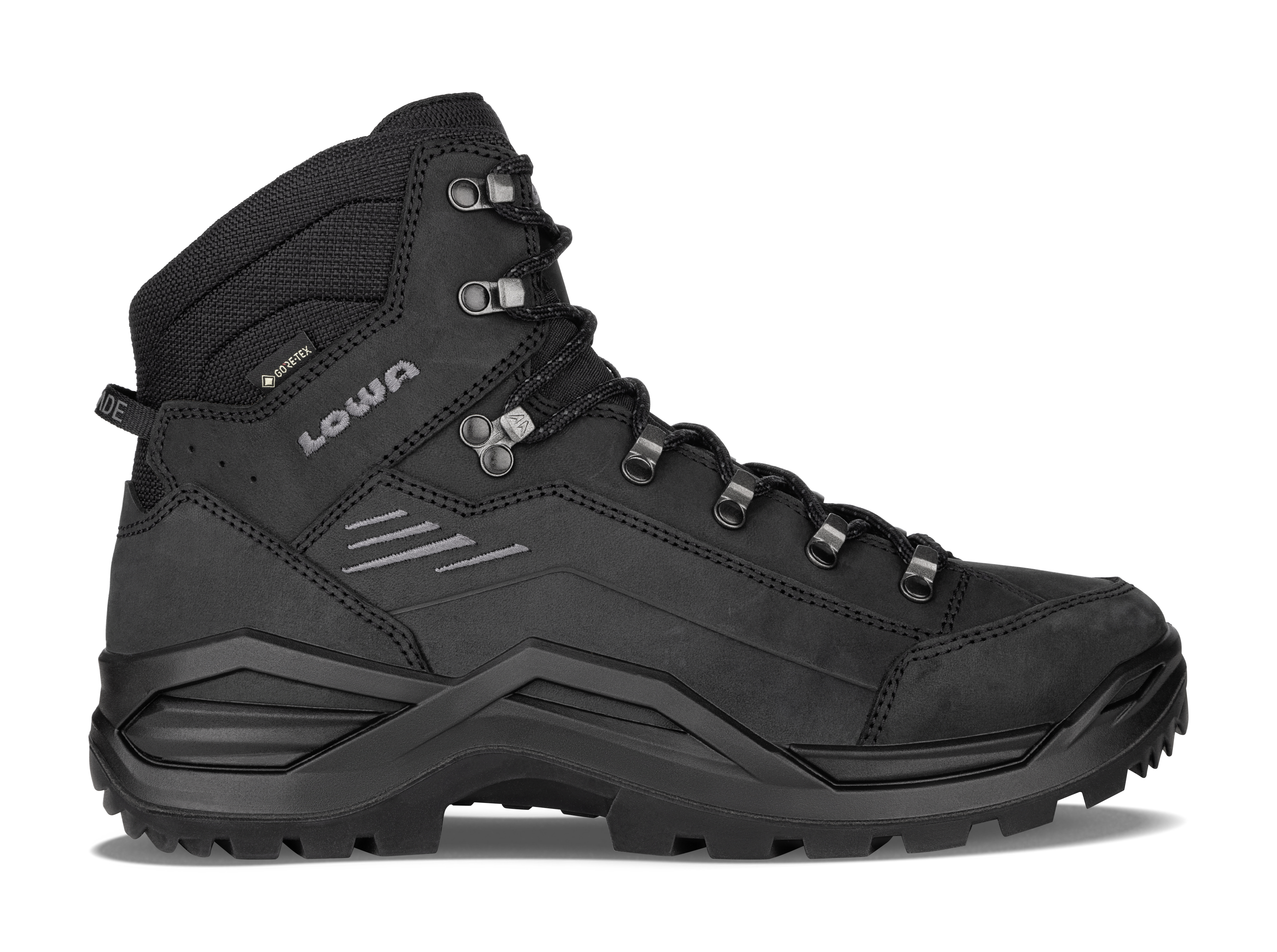 The Renegade Evo GTX Mid is the latest boot from LOWA’s best selling Renegade range, with a raft of performance improvements. With an updated closer fit from the previous generation, the Renegade Evo uses a combination of supple Nubuck leather with a clever stitch design to give maximum comfort right out of the box. An all-new Vibram sole, designed specifically for the Renegade Evo, offers best in class cushioning and superior grip on paths and trails. The latest Gore-Tex performance lining ensures the Renegade Evo is completely waterproof, keeping your foot comfortable in a wide range of climates. The Renegade Evo represents the pinnacle of lightweight hiking boot design and is 100% made in Europe.