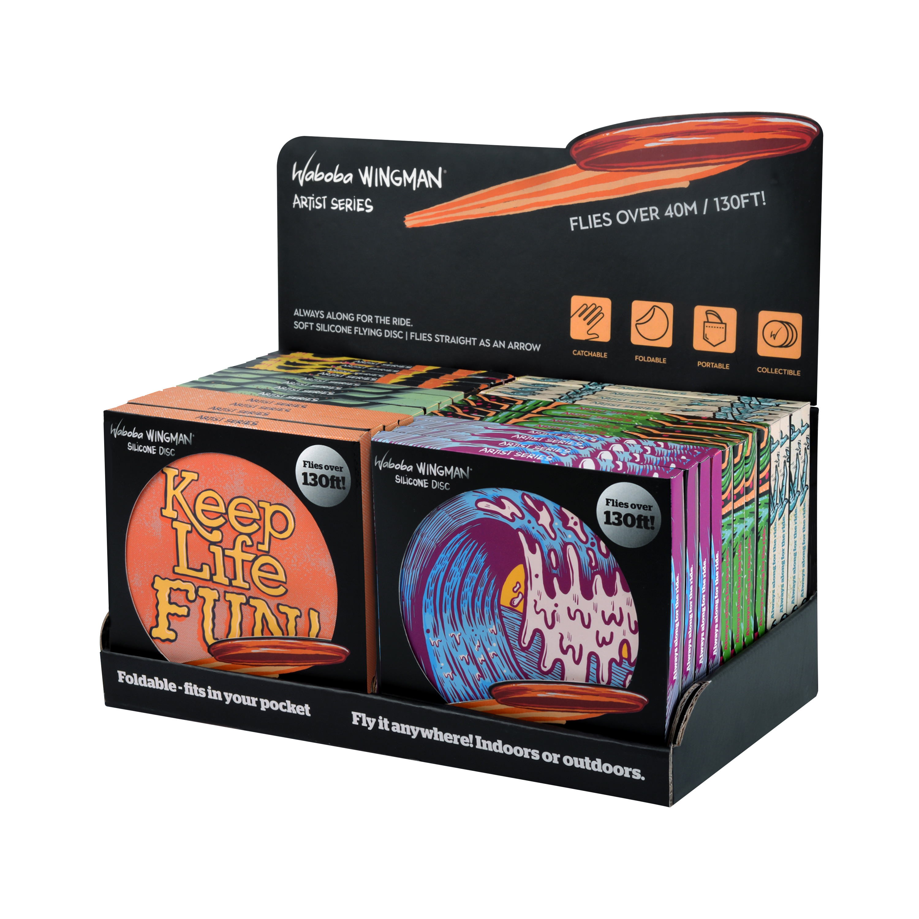 sky. With its unique aerodynamic design, Wingman flies over 40 meters / 130 feet, and doesn’t veer off course to leave you or your partner hanging. Like any Wingman should! Plus, with its silicone material, you can catch it easily by squishing it in your hand.
