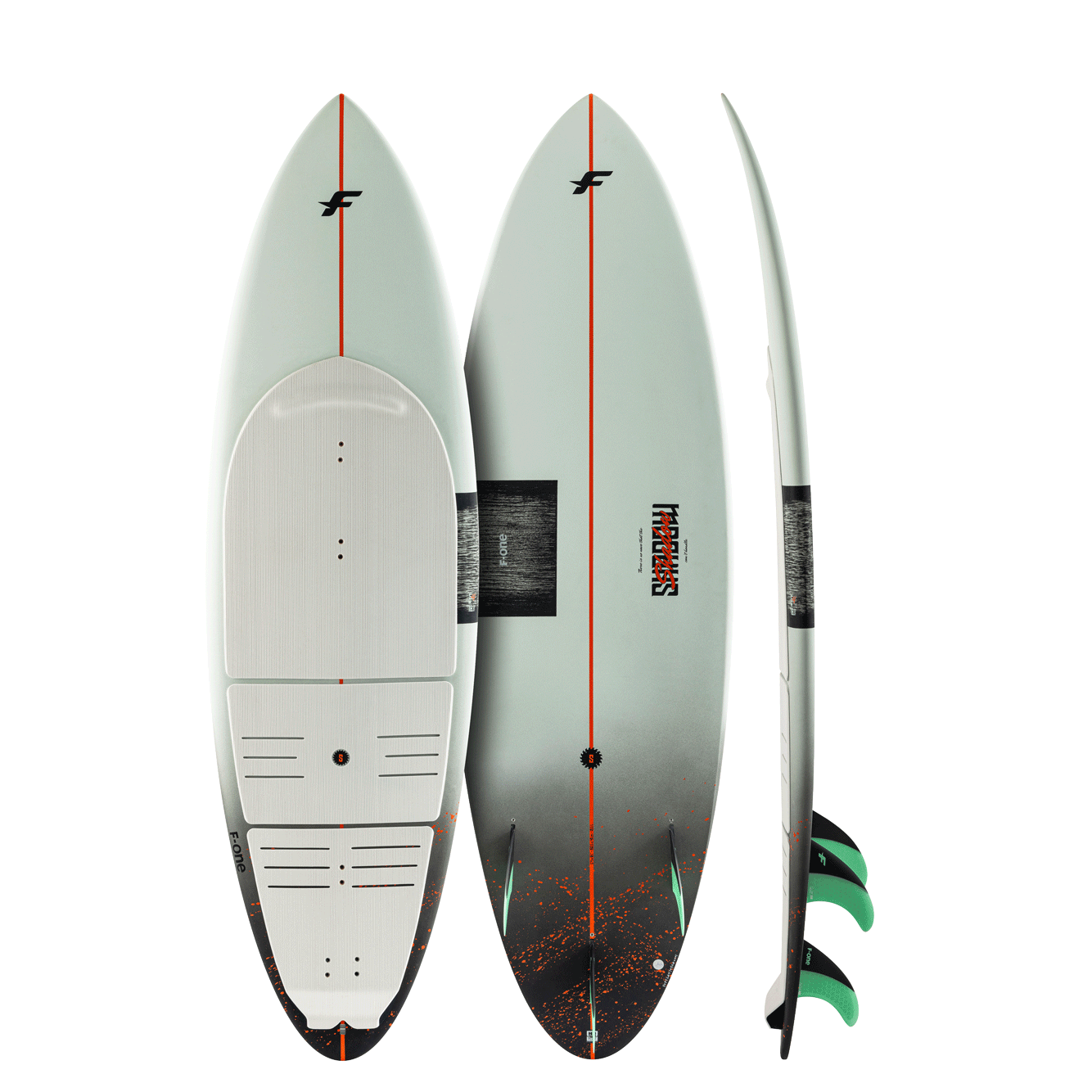 The SHADOW is available in 5’4, 5’6 and 5’8. All sizes are equipped with a full pad and foot straps inserts. The 5’4 board come with a set of the F-ONE Flow Carbon XS fins. The 5’6 and 5’8 come with a set of F-ONE Flow Carbon M fins.