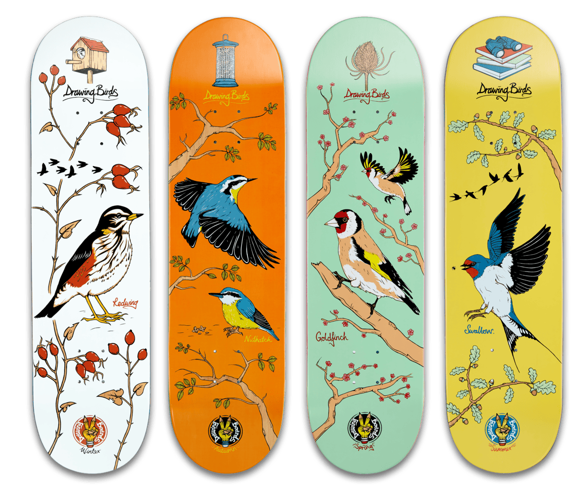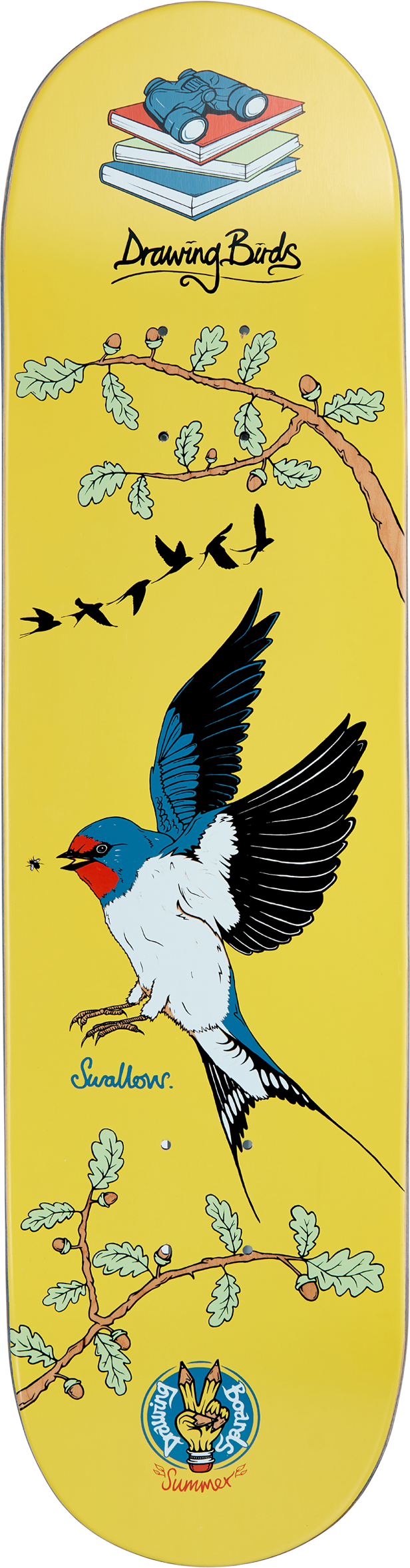 "Summer - Oak. Swallows are long-distance migrants that can cover over 200 miles in a day. That’s the equivalent of skating from Brighton to Nottingham without the view." - Ad, Drawing Boards