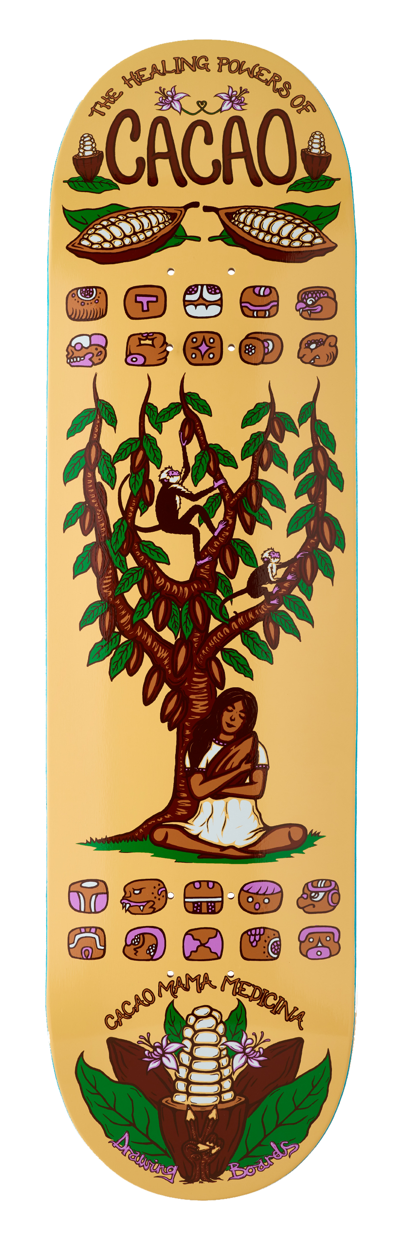 "As a kid I loved chocolate but I’d never really tried pure Cacao by itself. I remember drinking it before a skate and feeling really present and energised, which got me thinking about cacao as a plant medicine. I started drinking it in a new way and understanding the properties of this super food in its raw state. With the guidance of Tab (a facilitator of Cacao ceremonies) I started researching all the hype behind this humble little pod full of seeds. I felt inspired by the stories of the Mayans and how they used cacao in a sacred way. To them it was more precious than gold. I love that it opens up the blood vessels so there’s an increase in oxygen pumping through the body and that it’s full of antioxidants. It’s also a powerful source of bliss chemicals which help alleviate stress, depression and anxiety. Making it the perfect pre-skate brew."