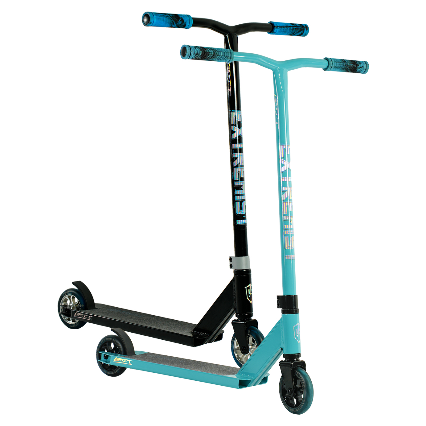 Dropping in with a brand-new deck design and fresh colour schemes| the all-new GRIT EXTREMIST is perfect for the young shredder looking to move on to a bigger freestyle scooter. The new 4.8” wide deck and light weight design allows for easier progression in both street and park without compromising on strength! Coming stock with Hi tensile steel riser handlebars| solid threadless forks| alloy core wheels| soft handle grips and flex fender brake| the GRIT EXTREMIST will meet all your little rascals needs!