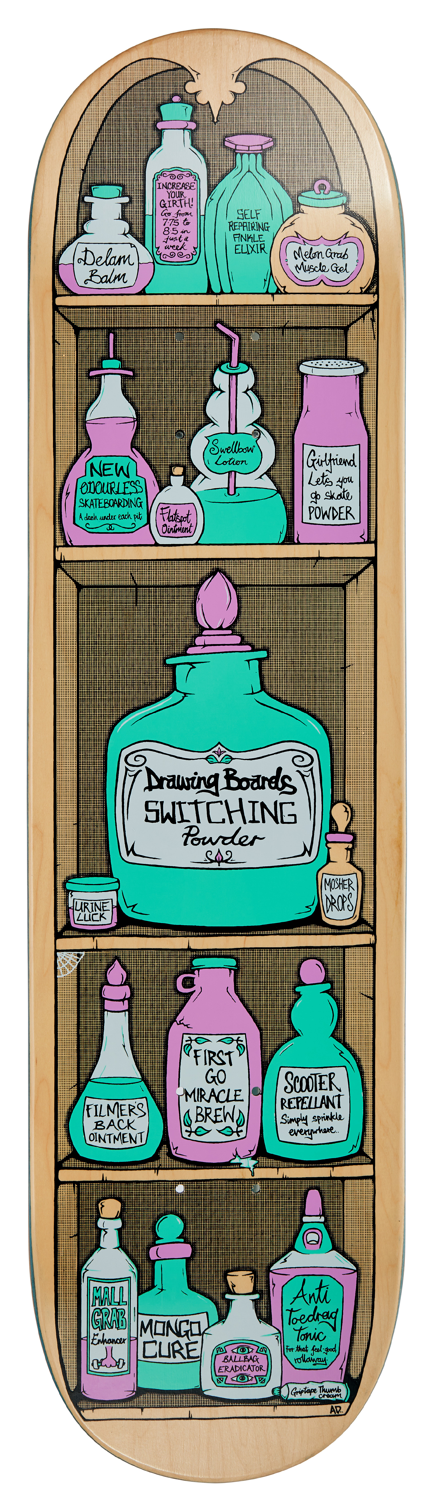 Lotions, Potions and Brews for all your skateboarding ailments. Concoctions include 1st Go Miracle Brew, Mongo Cure, Filmers Back Ointment and plenty more!