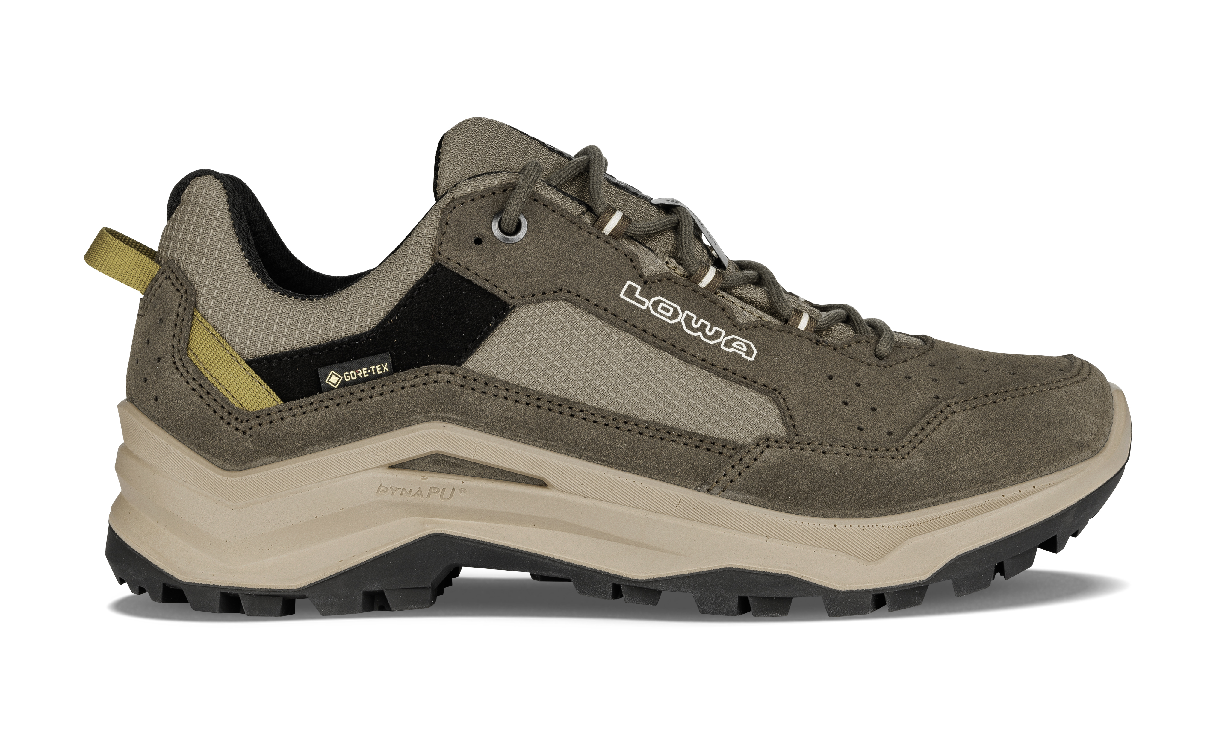 The new Ventierra shoe is built around a soft suede and nylon upper which is comfortable straight out of the box, with a Gore-Tex lining to keep your feet dry. The Ventierra has the new LOWA Allround Trac sole which is combined with a DynaPu cushioning layer to make for a very cushioned shoe and all-day comfort. Low profile tape lacing allows you to dial in the perfect fit down to the toe.