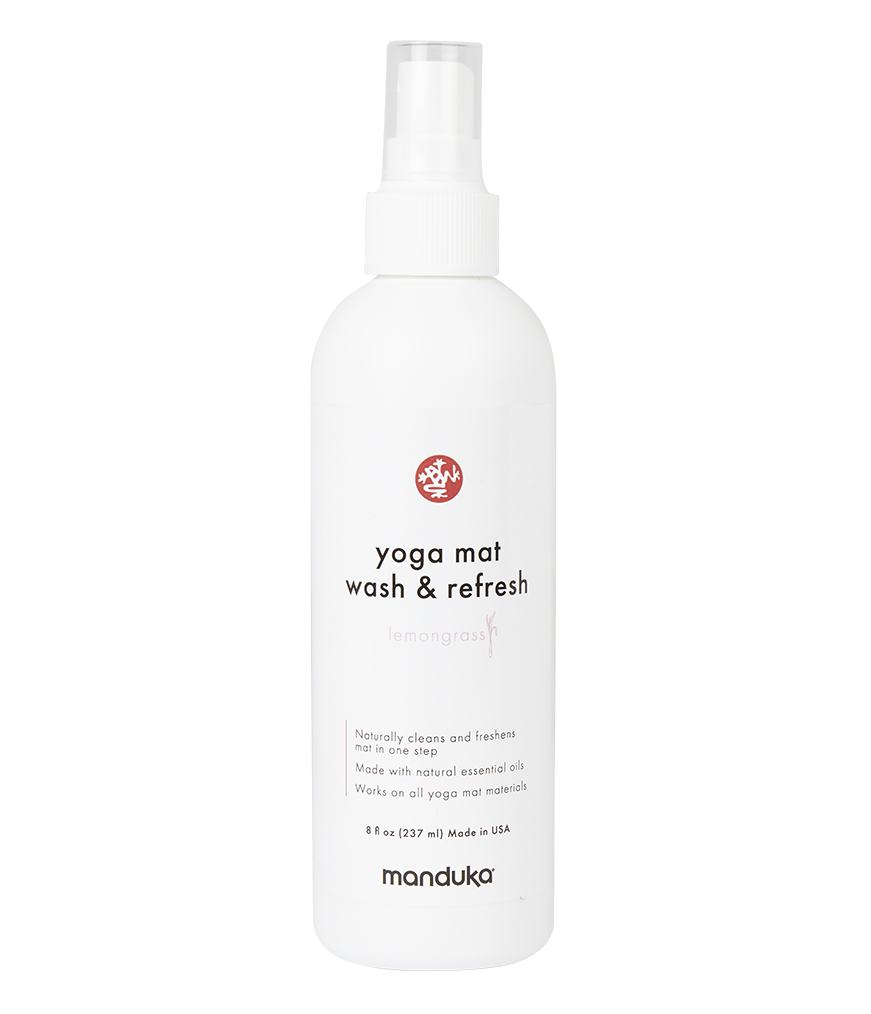 Manduka's Yoga Mat Wash & Refresh uses 100% naturally derived ingredients, formulated to keep your yoga mat smelling fresh and free from surface dirt and stains.