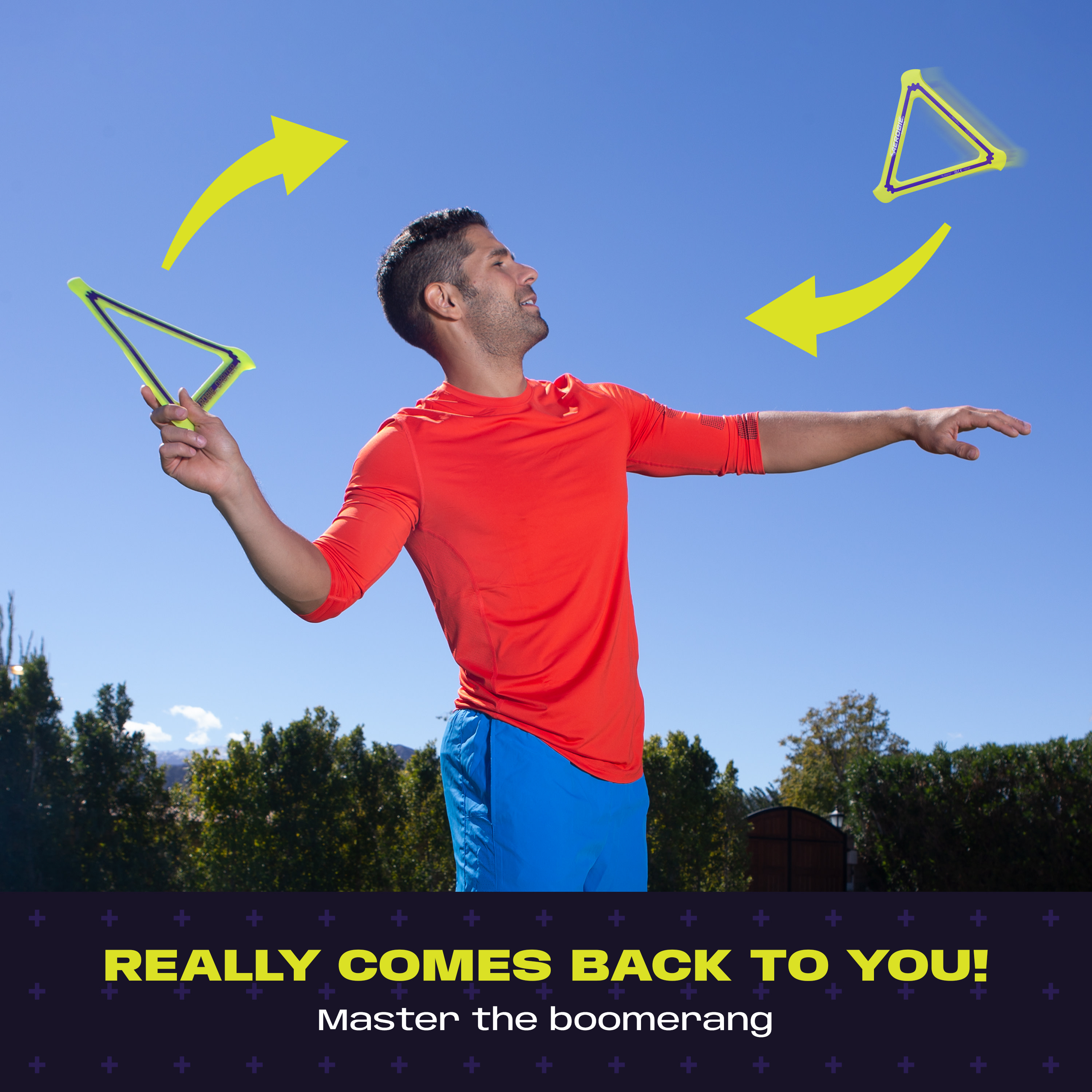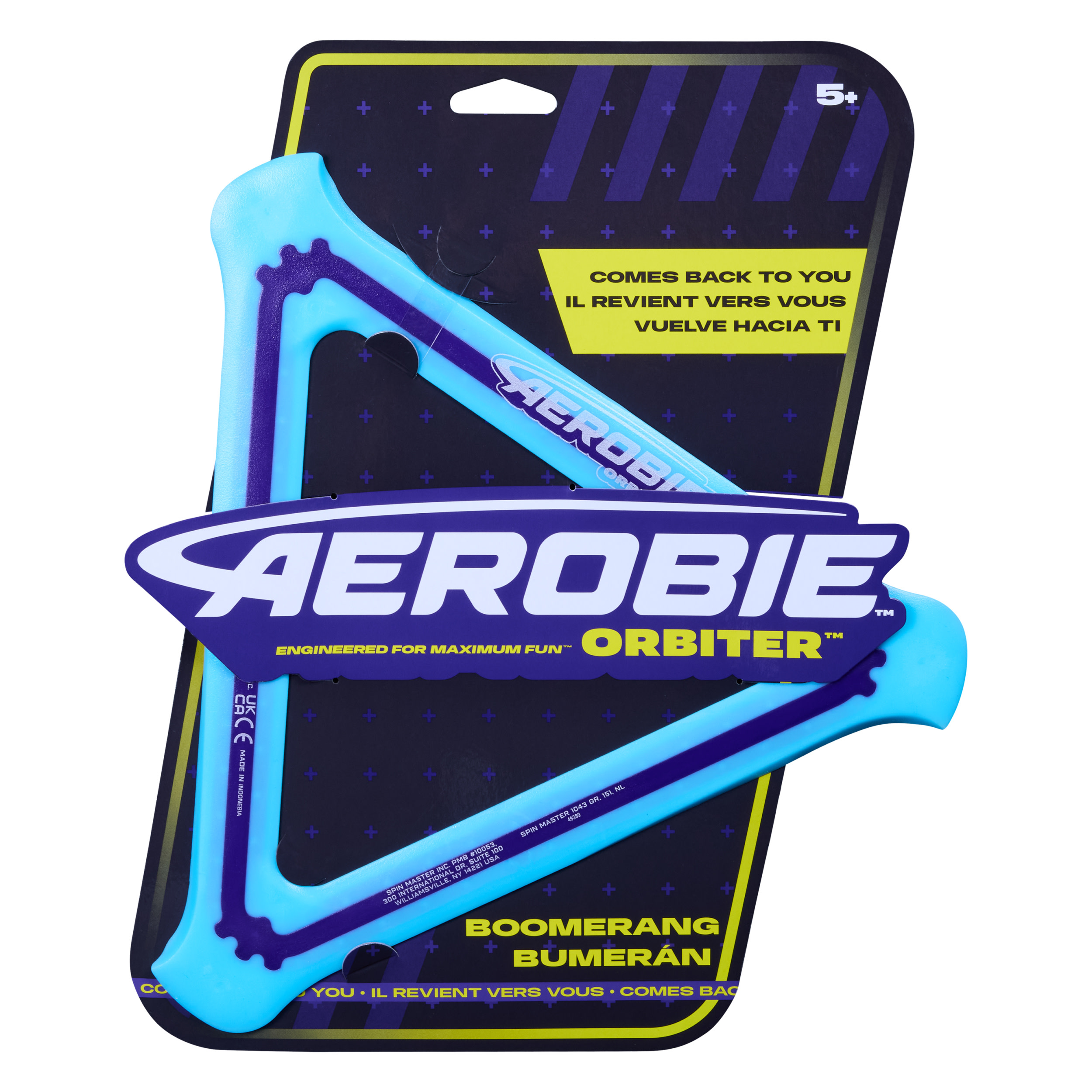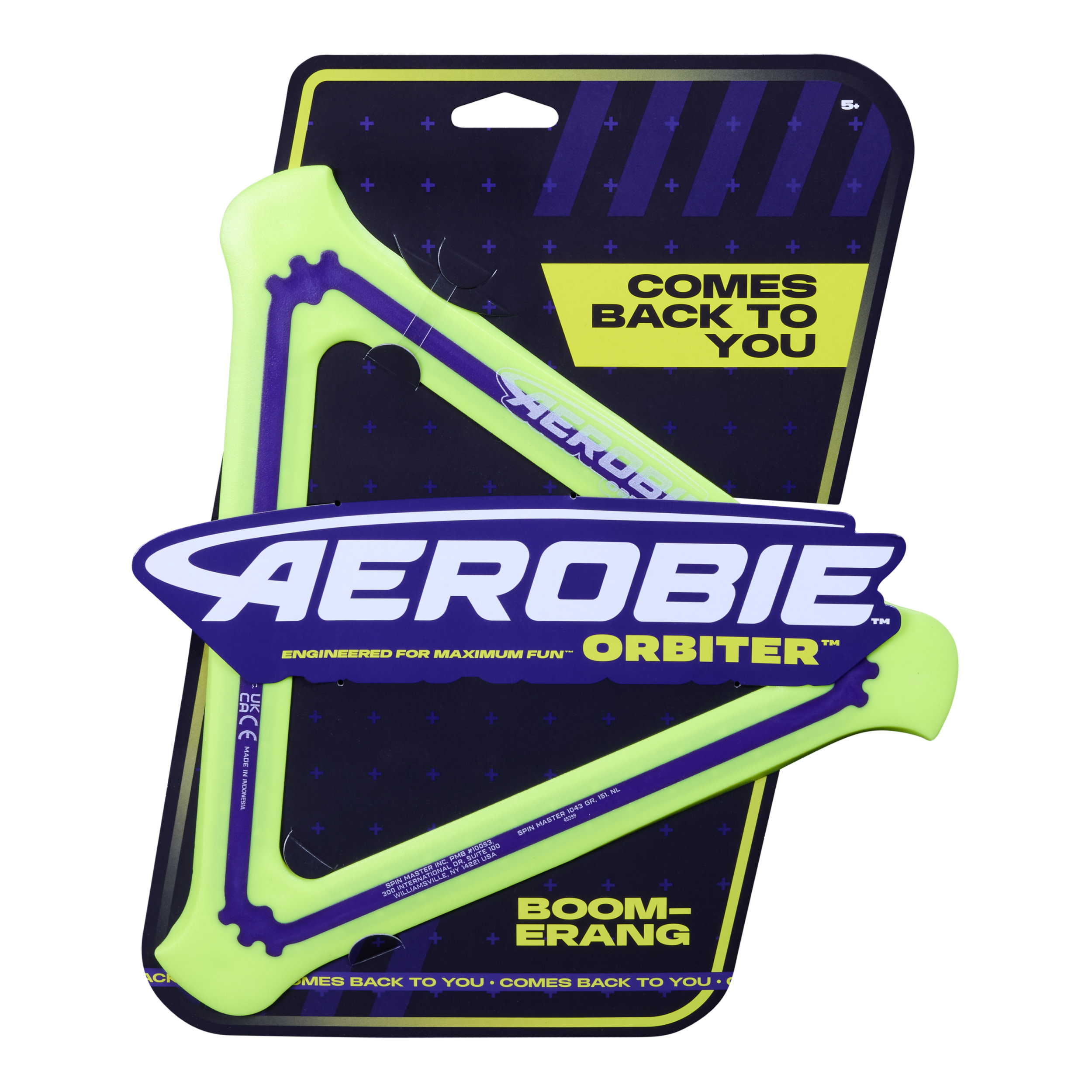 The Aerobie Orbiter Boomerang delivers out of this world performance! This boomerang disk travels up to 90 feet before it travels back to you. The soft edges and triangle shape provide a secure grip, so it’s easier to throw and catch. The open center allows each player to personalize their throwing and catching style – catch the edge with your hand or use the center to catch it with your arm or foot. Create your signature moves with Aerobie flying discs! The Aerobie Orbiter Boomerang measures 11.5 inches on each side.